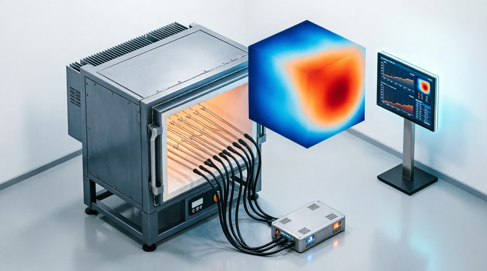 Traditional TUS testing typically uses external field instruments such as chart recorders or static data loggers connected to thermocouples through long trailing cables. Thermocouples are distributed at multiple points in the furnace working zone to capture temperature data during operation.